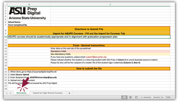 The file will be reviewed and processed by ASU Prep Digital Partnership Team. You will receive a receipt of submission and be included on the processing of the file. Once students are enrolled, our system will email the new credentials to students and guardians and administrators.